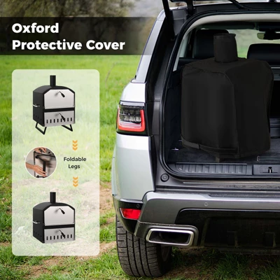 - 【Portable Pizza Oven】When not in use, the pizza oven with foldable legs can be stored into the included Oxford protective cover. This design not only facilitates easy transport but also extends the oven’s lifespan, making it a perfect choice for camping, backyard, or BBQ parties.
