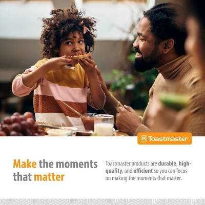 Introducing Toastmaster 2-Slice Toaster in Black with Stainless Steel, a true kitchen essential for every home. Designed with wide, self-centering slots, this toaster effortlessly accommodates various bread types, including sandwich bread, sliced bread and bagels. Whether you’re preparing a quick breakfast or a hearty snack, this versatile bread toaster serves as the perfect breakfast maker to start your day right.
