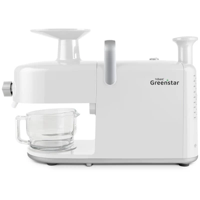 - All Stainless Steel Twin Gears – The Greenstar comes with all stainless steel Twin Gears for added durability, without sacrificing the quality of your juice. The advanced impeller press system rotates at a low RPM and generates minimal heat while juicing. The teeth of the twin gears are designed with special pocket recesses to aid in processing hard vegetables like carrots. Unique cutting points of the twin gears make for quick auto-feed juicing of stringy vegetables like celery and completely masticate your produce, providing a higher juice yield..