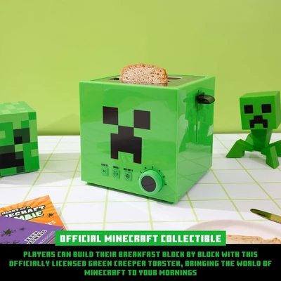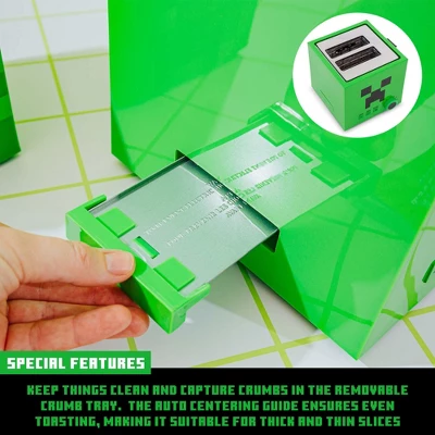 - BUILD YOUR DAY RIGHT: Compact two-slot toaster in iconic baddie green with a Creeper face on one side.