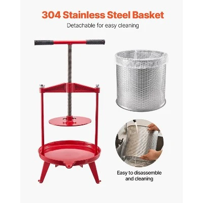 VEVOR 3.69 Gal/14L Fruit Wine Press, Stainless Steel Basket, Manual Juice Maker, Cider Apple Grape Tincture Making Press, Red