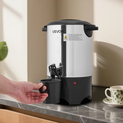 Long-Lasting Heat Preservation: This large coffee urn maintains 192℉-203℉ / 89℃-95℃ with plug-in heating. Red and yellow lights show heating and keep-warm status, locking in the coffee aroma so you always enjoy steaming cups for continuous service