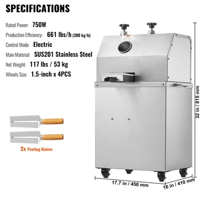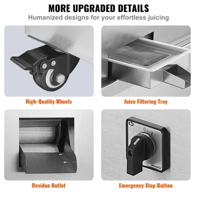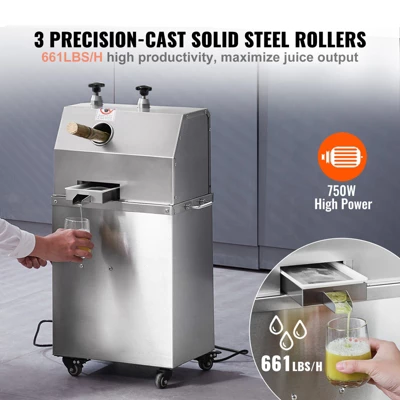 VEVOR Electric Sugar Cane Juicer, 750W Sugarcane Juicer Machine With 661LBS/H High Output, 3 Stainless Steel Rollers, 2.4″ Large Inlet