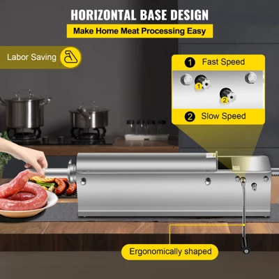 Dual-Speed Control (Fast/Slow): Choose between two speeds for quick sausage filling or slow casing filling. Equipped with an ergonomic handle for comfortable and efficient operation.