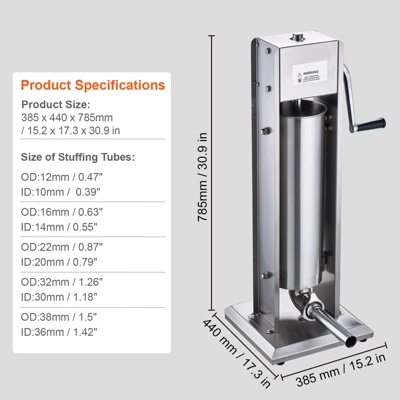 Large 7 L / 15 lbs Capacity: With a 7 L / 15 lbs large capacity barrel, it can handle large-scale sausage production, perfect for commercial applications such as supermarkets, restaurants, food processing factories, or home use.