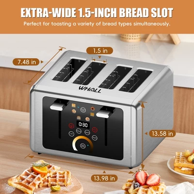 WHALL 4 Slice Touch Screen Toaster – Stainless Steel Toasters with Bagel,Cancel,Defrost Function, 1.5in Wide Slot, Removable Crumb Tray, 6 Bread Shade Settings, for Various Bread Types, 1500W Key Features